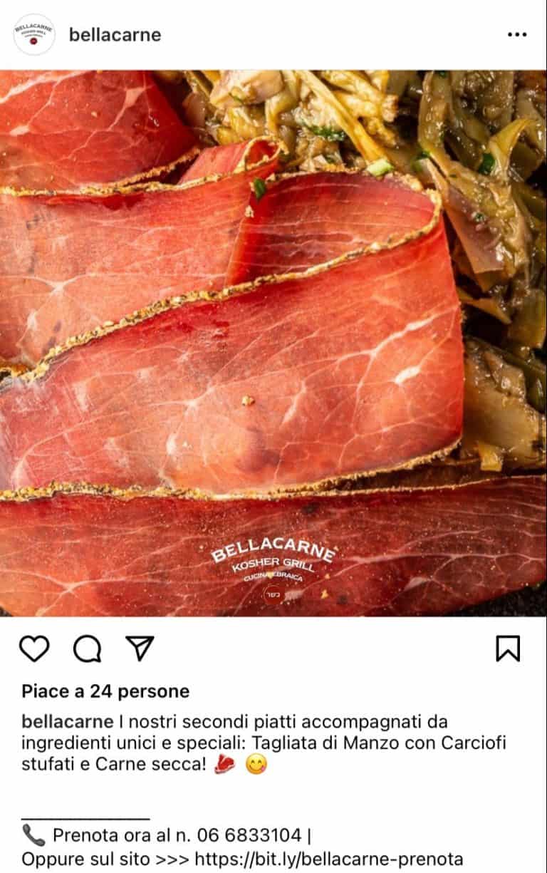 אי שם, בלב הגטו היהודי, שוכנת לה מסעדה כשרה בשם Bella Carne. באיטלקית פירוש השם הוא "בשר יפה", ואכן התמחותה של המסעדה היא במטבח בשרי כשר ומשובח. התפריט ייחודי ומגוון כי הוא משלב מנות יהודיות מסורתיות ואפילו ישראליות! למשל: ראש כבש עם ירקות מוחמצים; פלאפל; קוסקוס דגים; פסטה קרבונרה (ללא מוצרי חלב, כמובן) עם בשר מיובש וביצים טריות; מוח מטוגן (לאמיצים בלבד) ועוד. כמו כן היא מגישה קינוחים פרווה תוצרת בית דוגמת טארט עם ריקוטה צמחית ודובדבנים חמוצים ומילפיי עם פודינג שוקולד צ'יפס. המסעדה מגישה אף ארוחות שבת מיוחדות המונות חמש מנות במחיר 40 יורו למבוגר ו-25 יורו לילד. כדאי להזמין בהקדם כי המקומות מוגבלים! קרניבורים, הגיעו בהמוניכם!