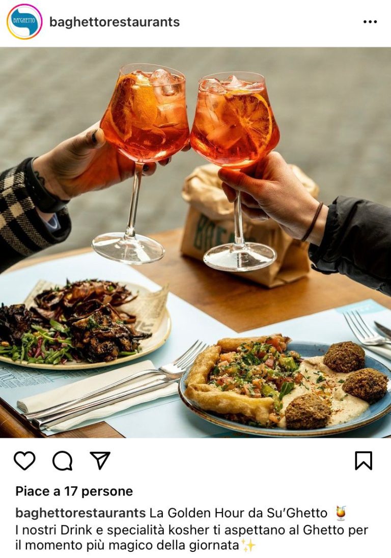 המסעדה מציעה גם תפריט מיוחד לשבת ב- 40 יורו למבוגר ו-30 יורו לילד (עד גיל 8), עם ארוחות בשישי בערב ובשבת בצוהריים. יש להזמין מקום מראש כדי להצטרף לחגיגה! המסעדה שקטה ואינטימית עם אווירה נינוחה במיוחד, עם חלל פנימי וחיצוני. בחלל החיצוני תיהנו מנוף למונומנט המפורסם של הקיסר אוגוסטוס, אכסדרת אוקטביה, שסימן פעם את הגבול שאסור היה ליהודים לחצות בלילה. כשתגיעו לגטו בהחלט תיהנו ב-Baghetto!